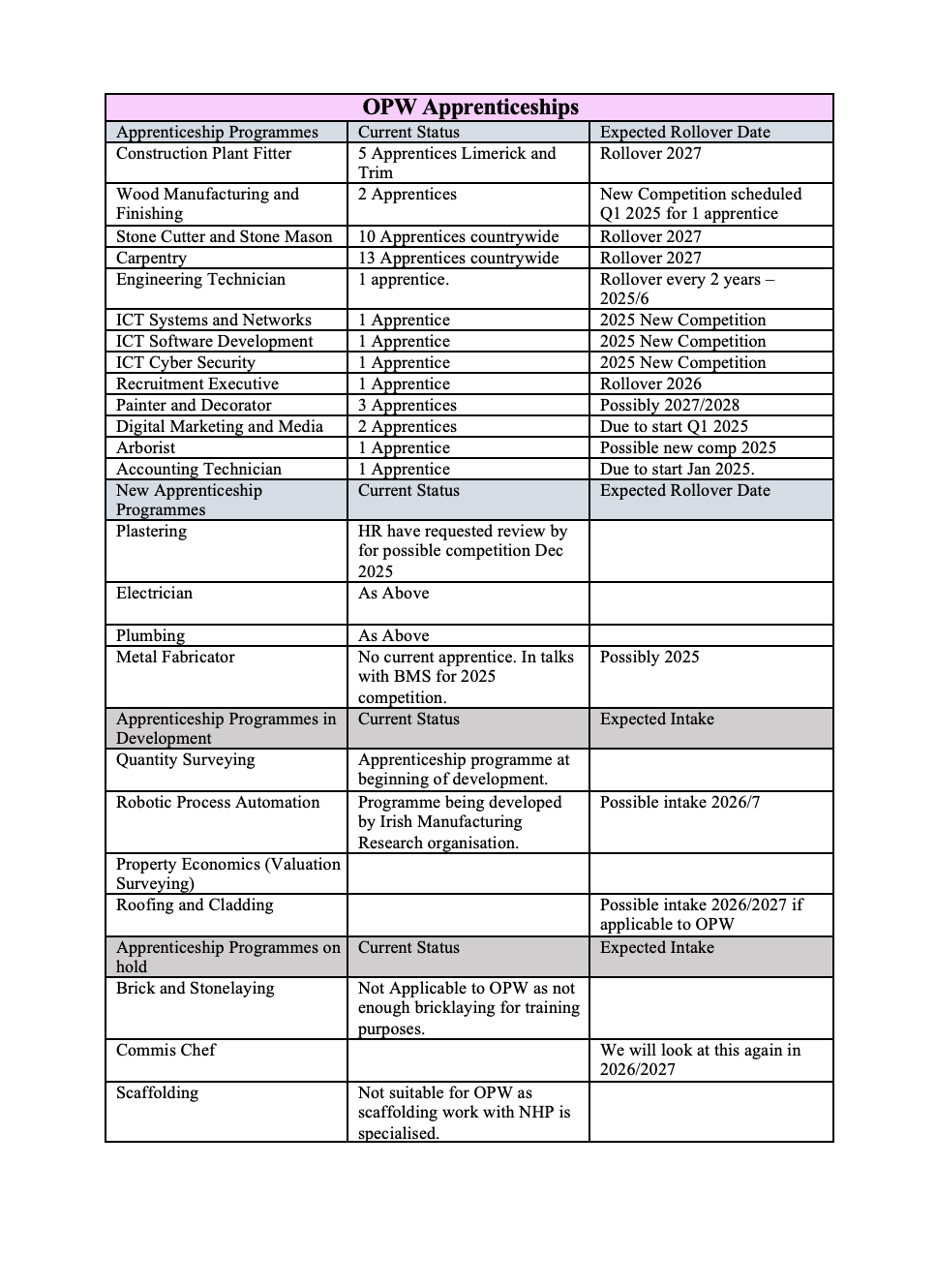 A new apprenticeship recruitment campaign has commenced in the Office of Public Works (OPW) following an agreement between SIPTU representatives and management.